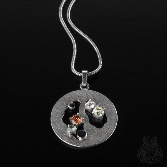 Material: 925er Silber, Zirkonia – weiß, braun, grün, Niello